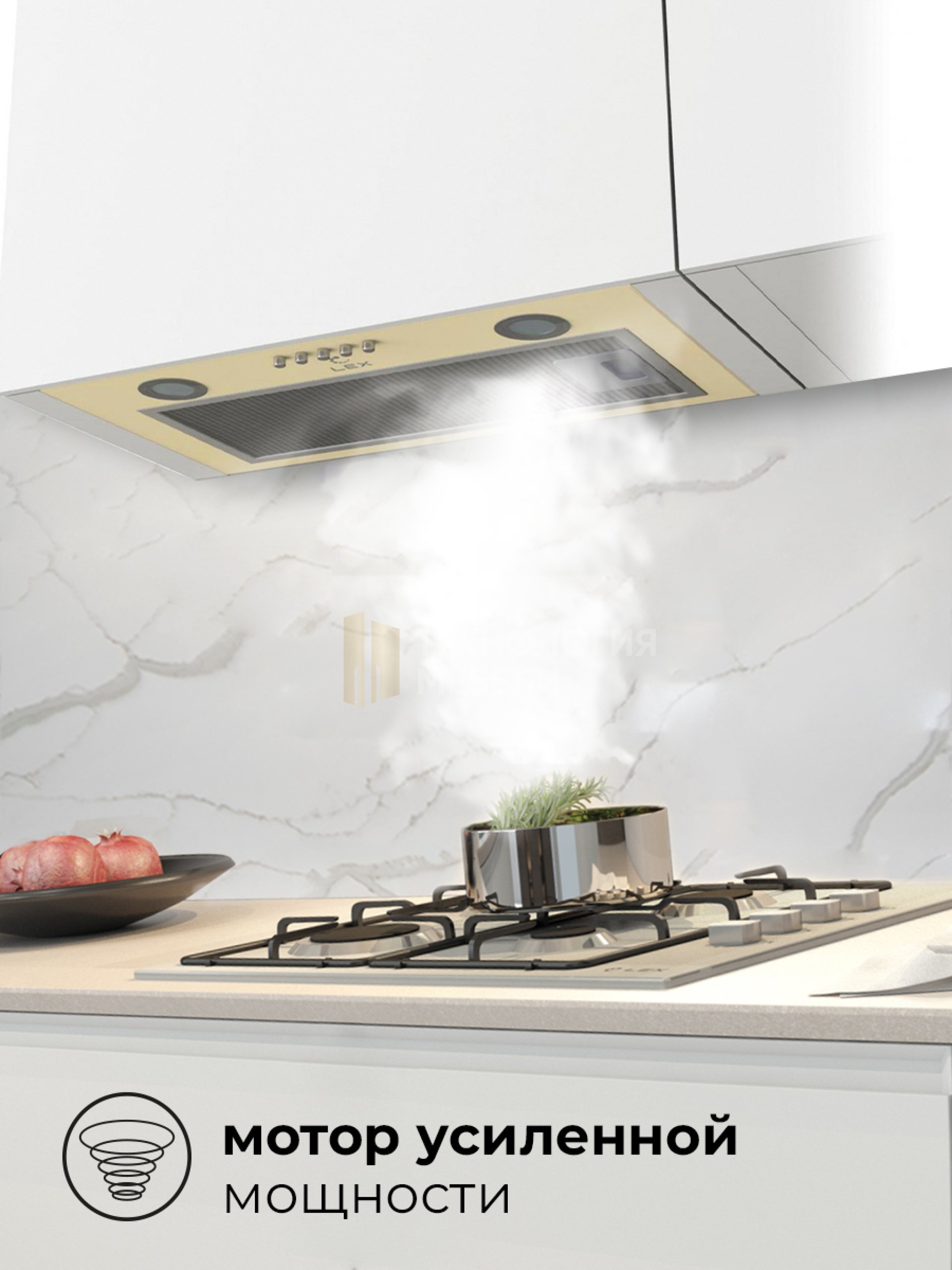 LEX GS BLOC P 600 IVORY – полновстраиваемая вытяжка практически незаметна в интерьере, благодаря чему отлично подходит, как для интерьера в классическом стиле, так и для современного минималистичного пространства. Устройство светлого цвета имеет интуитивно понятное кнопочное управление. В передней части вытяжки расположена экономичная LED подсветка. Подключение LEX GS BLOC P 600 IVORY возможно, как на отвод воздуха в вентиляцию, так и на режим рециркуляции воздуха. Мотор повышенной мощности обеспечивает уникальные для своего класса показатели производительности.
