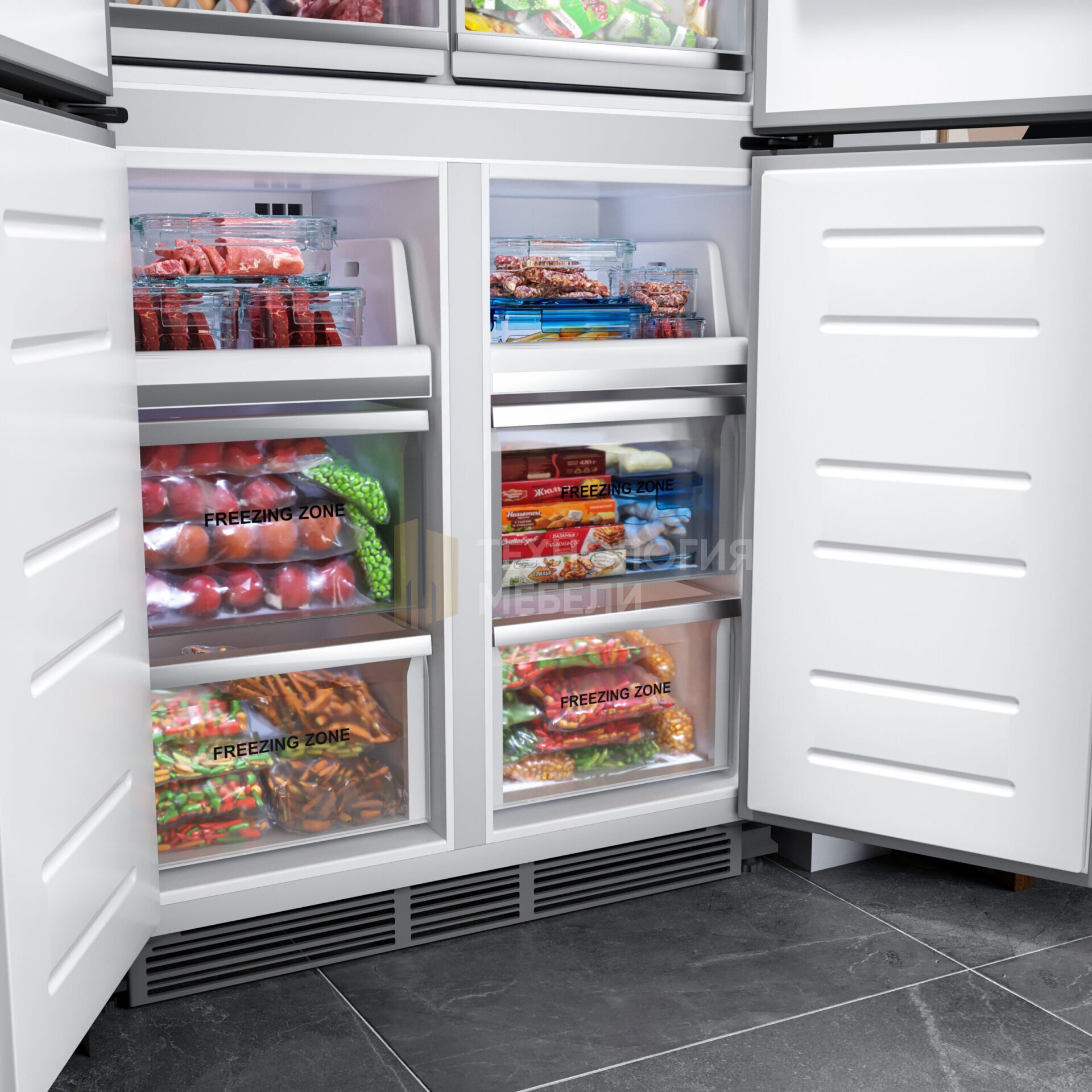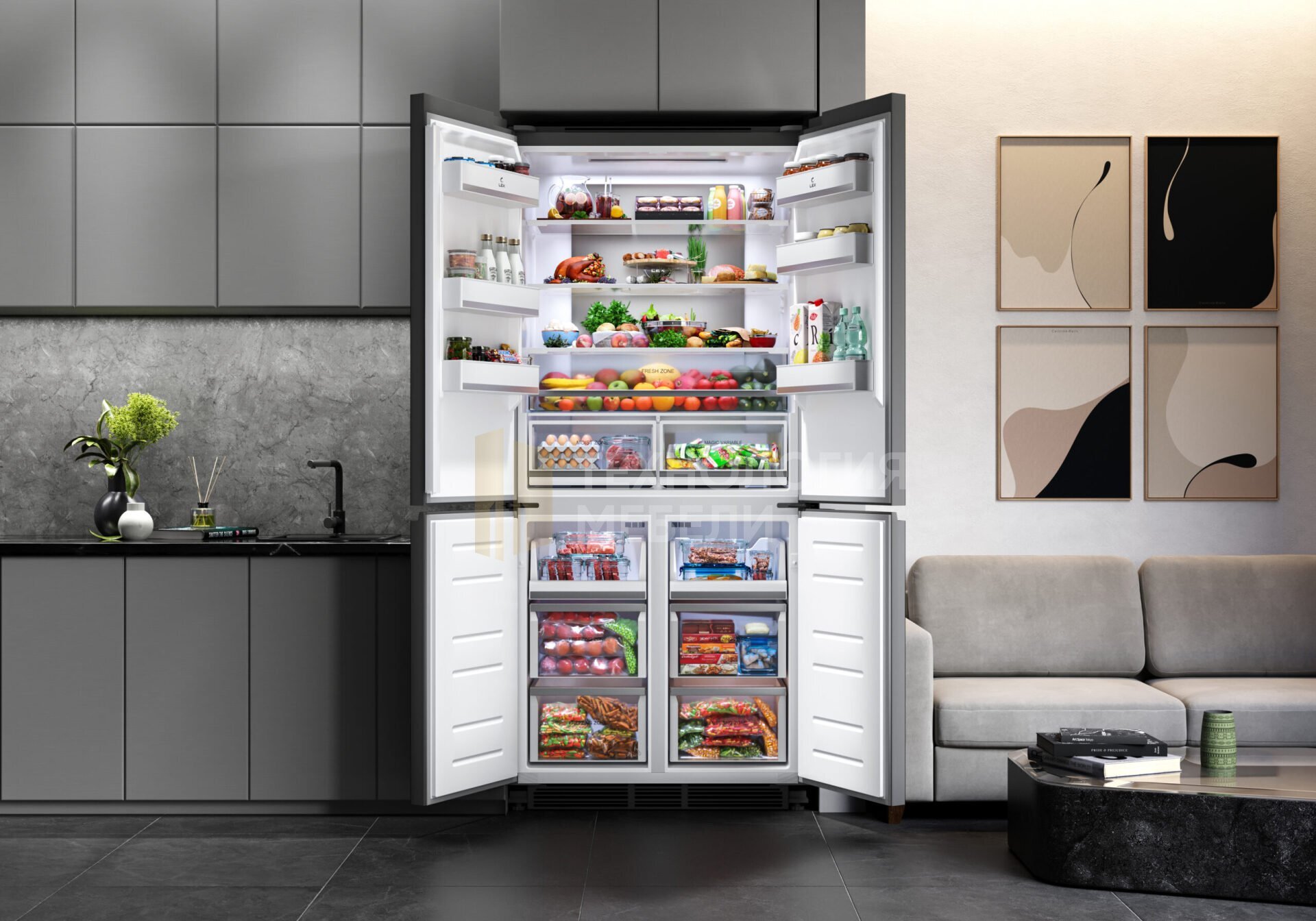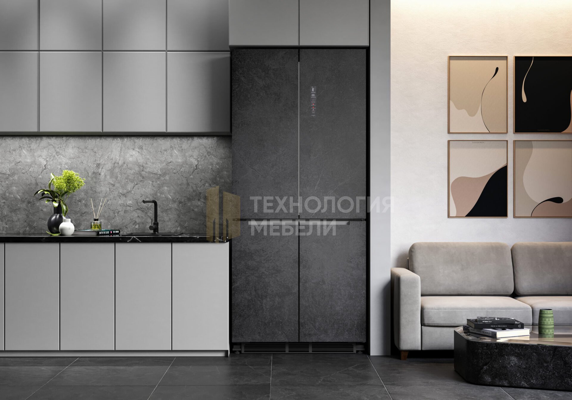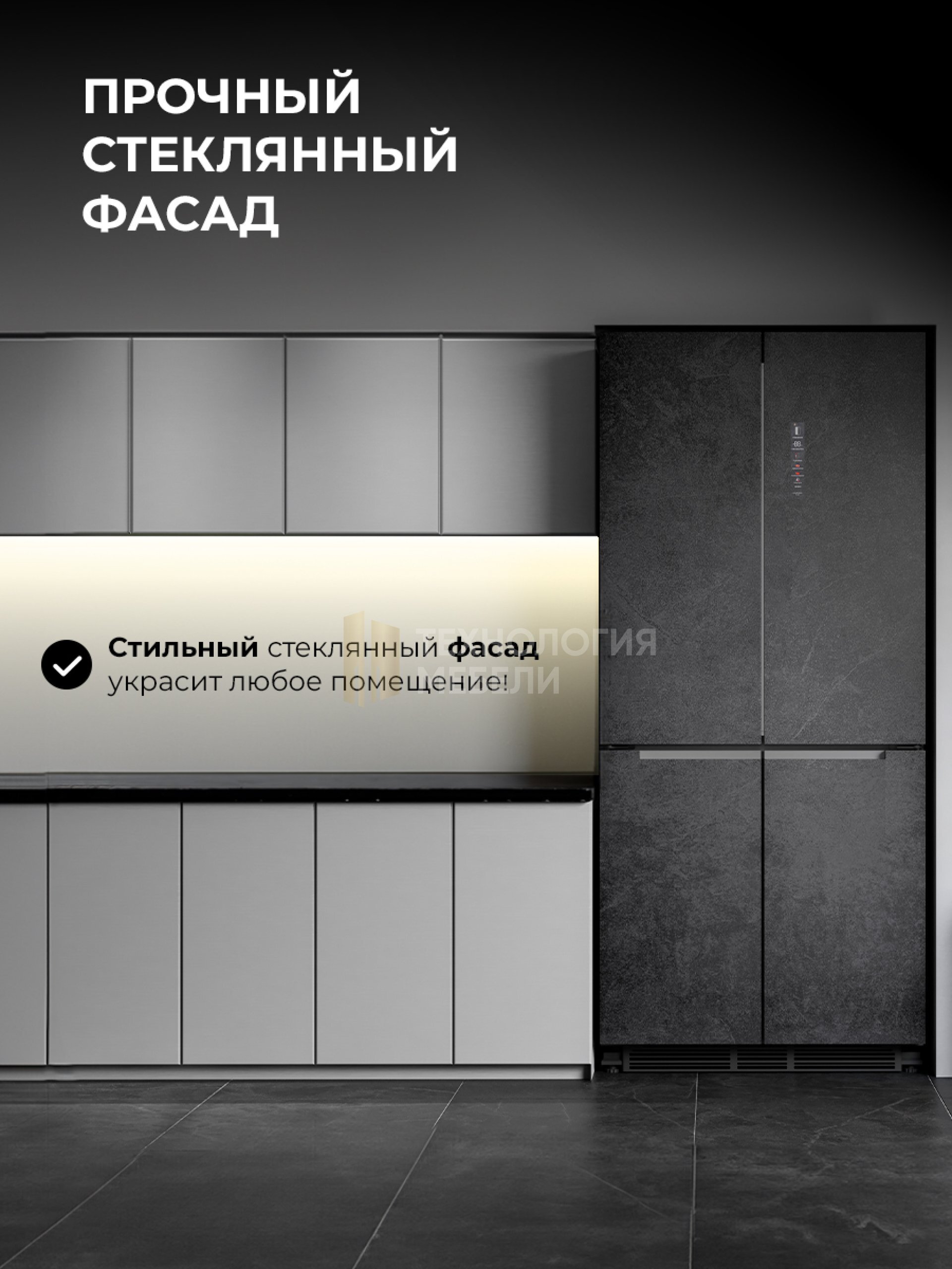 Холодильник Cross Door с инверторным компрессором будет радовать вас многие годы. Модель с каменно-серыми стеклянными дверьми станет ключевым элементом дизайна вашей кухни. Вентиляция у холодильника находится в нижней части, поэтому его можно интегрировать в любой шкаф или стену.