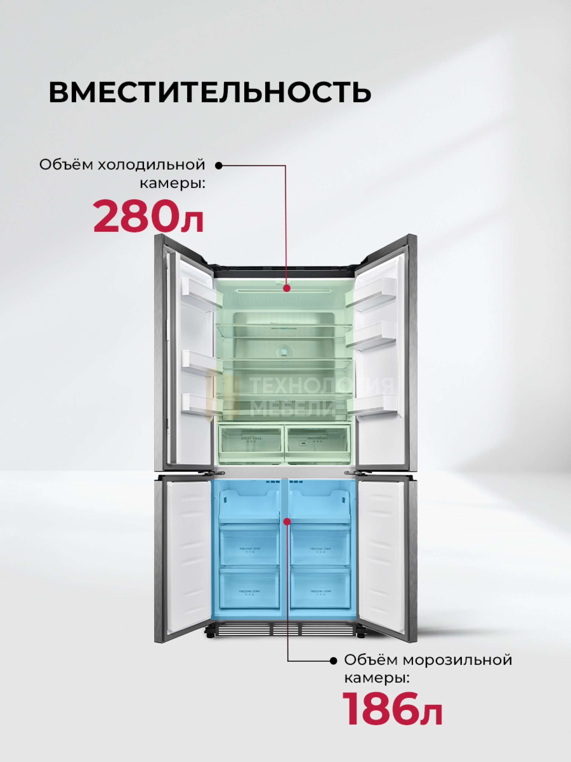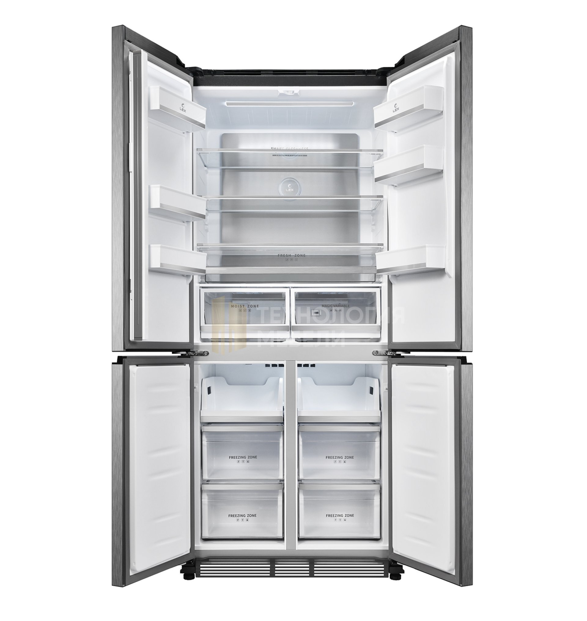 Разделение на 3 камеры с впечатляющим объемом, независимыми контурами охлаждения и системой Total No Frost делает использование холодильника и уход за ним очень комфортными.