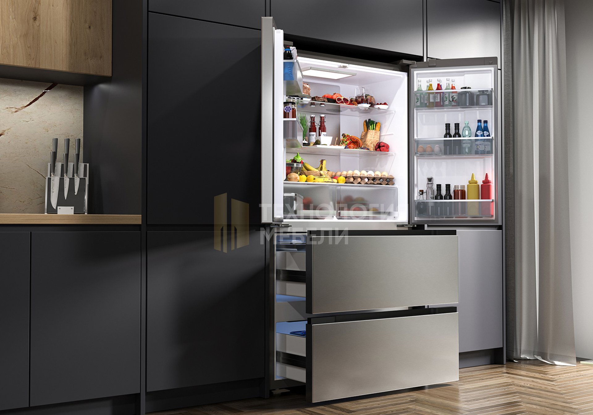 Технология Total No Frost предотвращает образование инея и способствует равномерному охлаждению во всех зонах. Электронная панель управления с дисплеем позволяет точно регулировать температуру и контролировать текущие параметры, а яркая LED-подсветка дает возможность легко найти даже мелкие продукты. Дополнительные функции делают охлаждение и замораживание еще более эффективными и быстрыми.